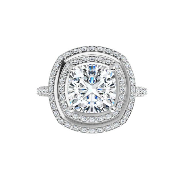 14K White Cushion Halo-Style Engagement Ring