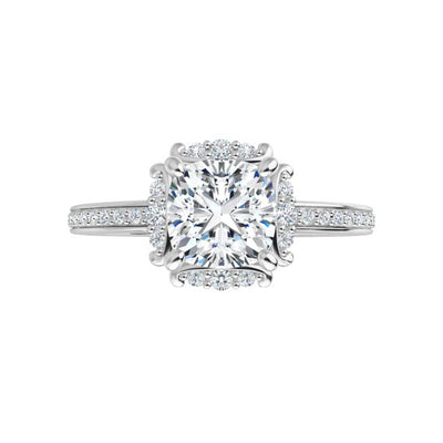 14K White Cushion Accented Halo-Style Engagement Ring