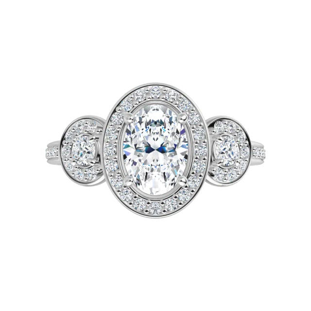 14K White Oval Engagement Ring